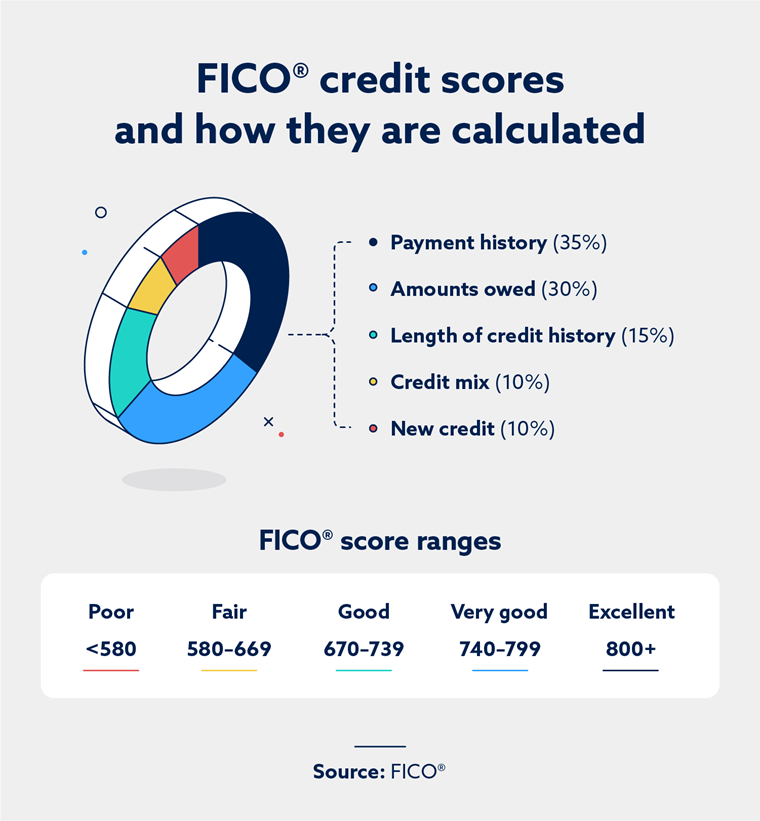 According to FICO, the algorithm for calculating a credit score contains five components that are assigned the following weights: