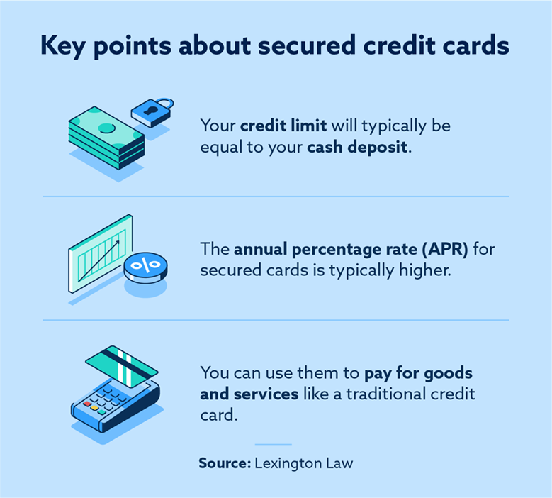 Secured credit cards can help build credit when used responsibly. These cards are also backed by a cash deposit that lenders use as collateral.