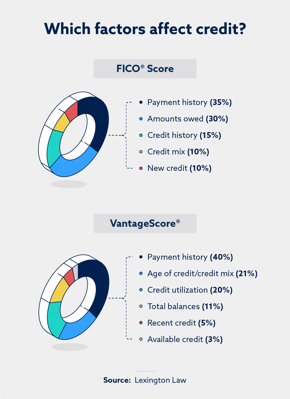 Credit mix weighs on your credit score differently depending on which scoring model is considered. Most lenders use FICO score and VantageScore when approving people for loans—and both models have different credit score factors.