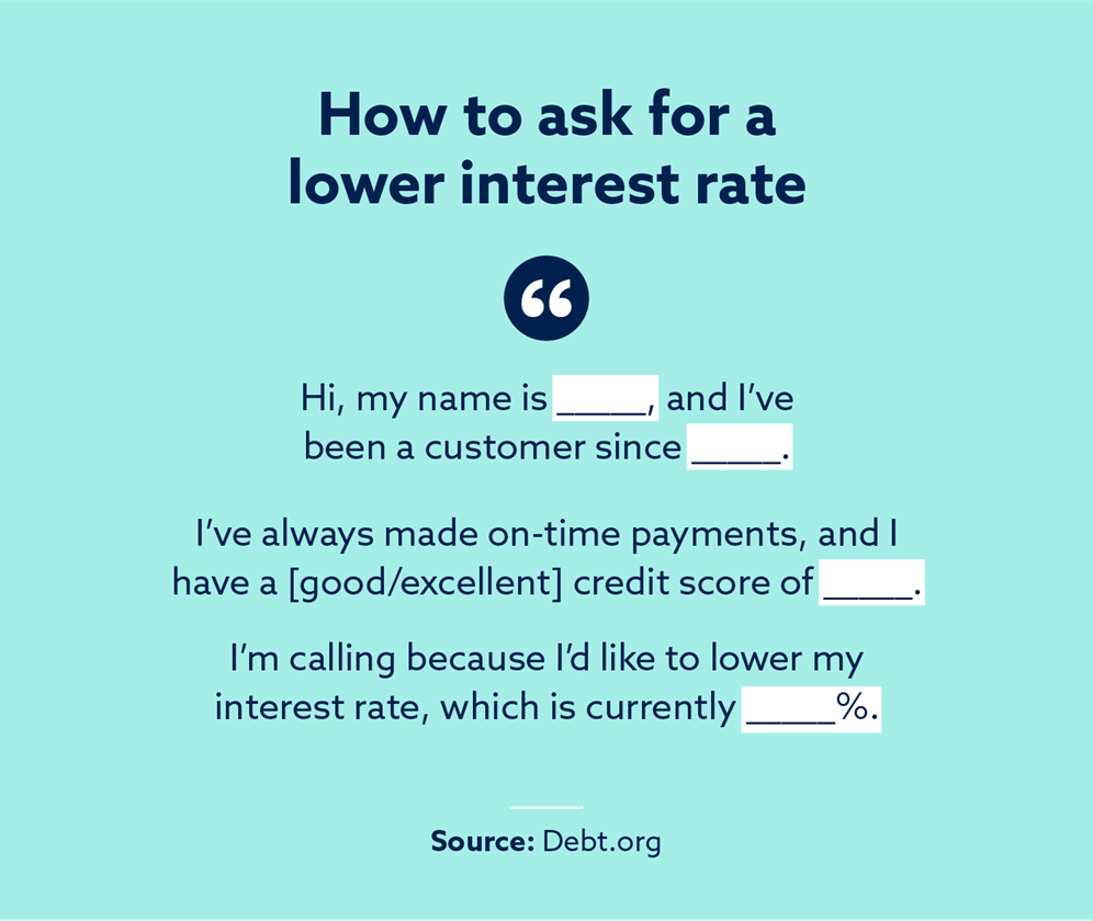 It may help to explain why you want a lower rate. For example, if you want to pay off your debt faster, a lower rate can help you reach your goals. Just remember to stay calm and be polite during every interaction.