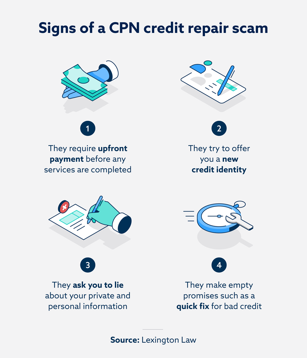 Credit repair scams often market CPNs to those trying to rebuild their credit. But in fact, any business that sells a CPN is engaging in fraudulent activity.