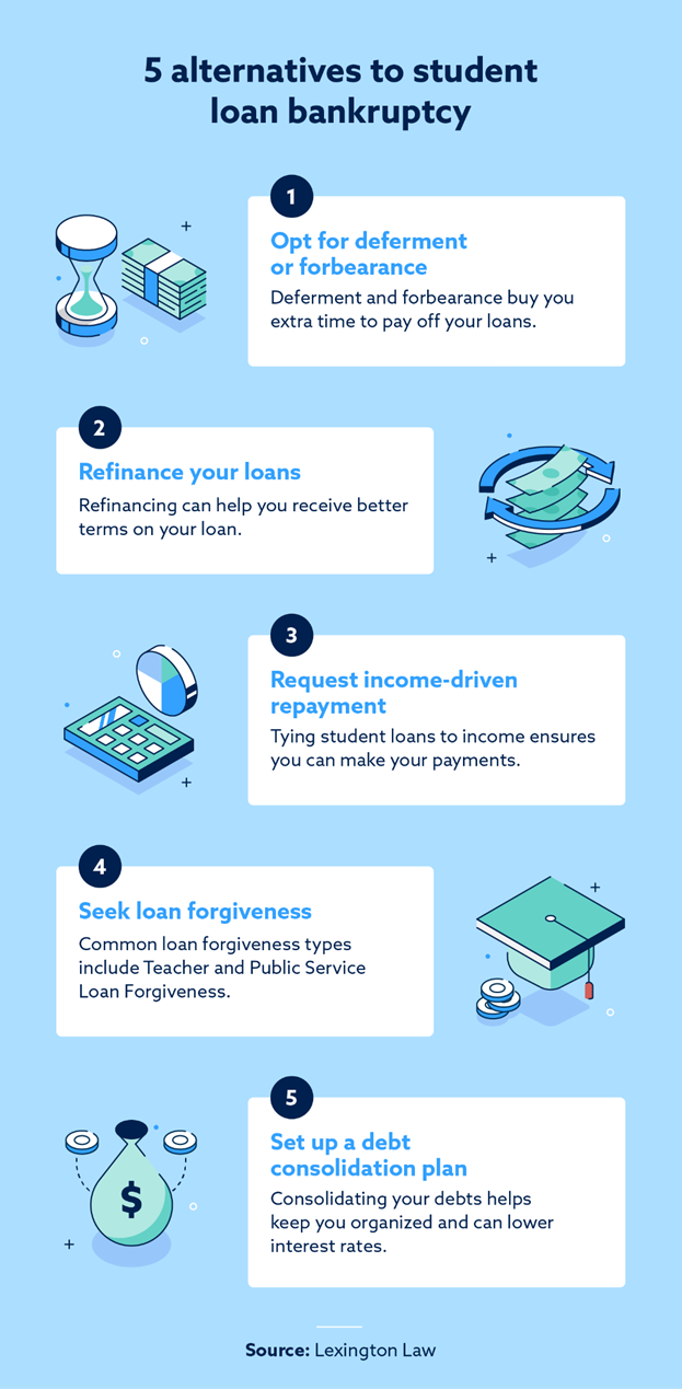Though bankruptcy can be a useful method to help deal with excessive student loan debt, it’s only recommended as a last resort. Other methods are available, and may be far easier than filing bankruptcy.