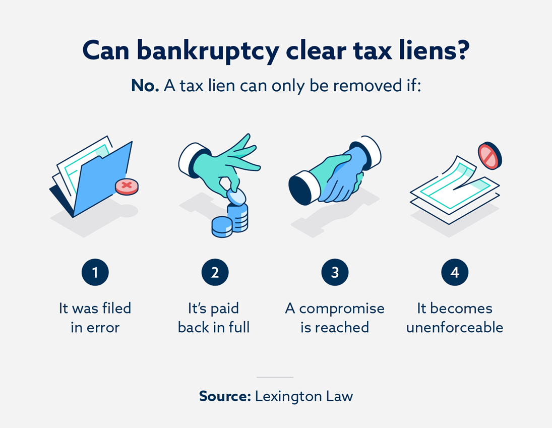 Additionally, bankruptcy will not clear tax liens. Liens give the IRS or other taxing authority a claim on your assets. When it comes to tax liens and bankruptcy, the benefits are minimal.