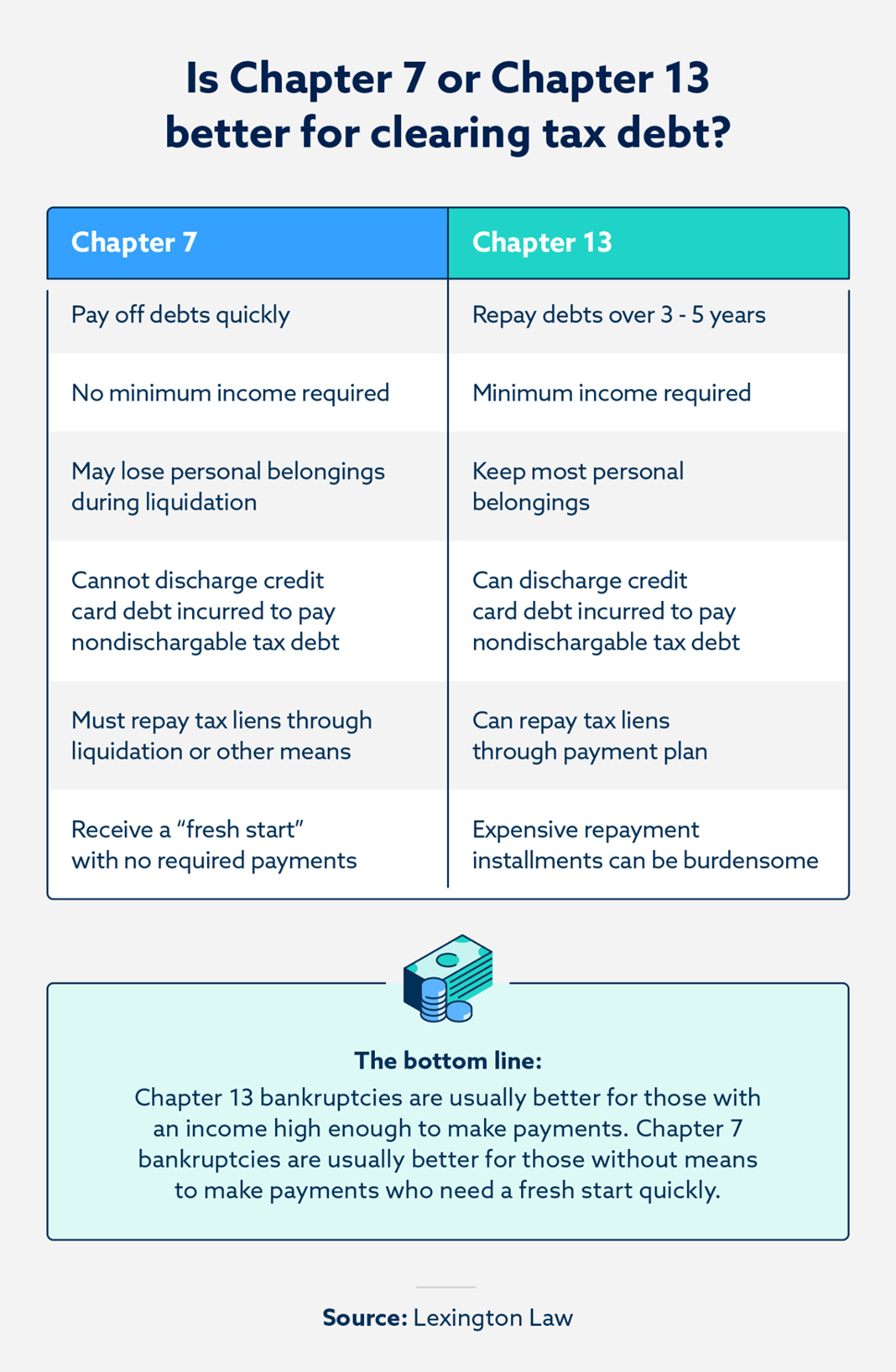 If you need help tackling your tax debt, consider getting professional advice. And if you need assistance with your credit after going through a bankruptcy, you can look into credit repair options that may help you.