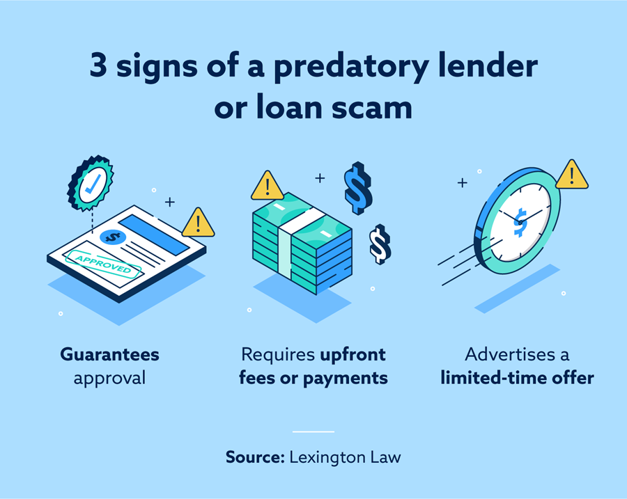 There are plenty of reputable high-risk lenders, but some predatory lenders or scams take advantage of people with low credit scores as well. They typically advertise: